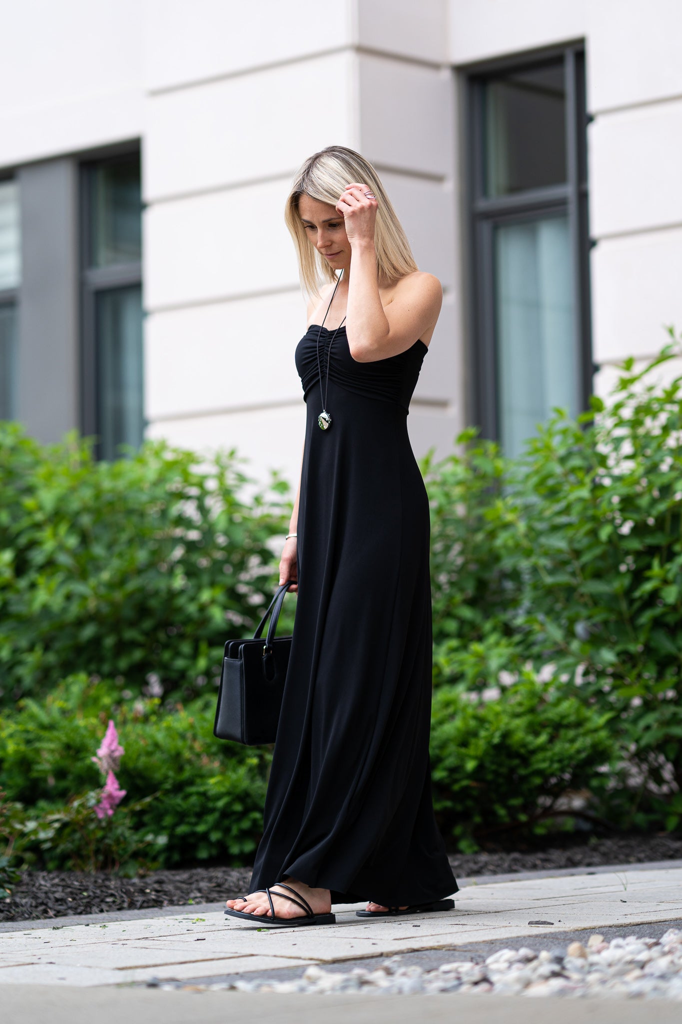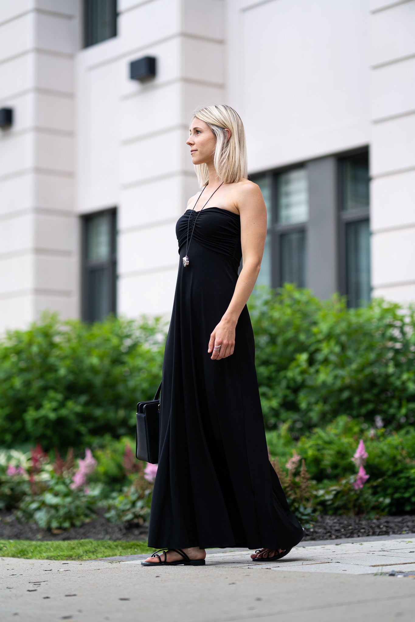 Longe robe maxi sans manches ligne A avec fronces au buste