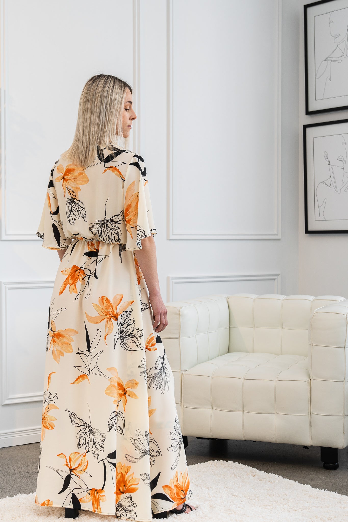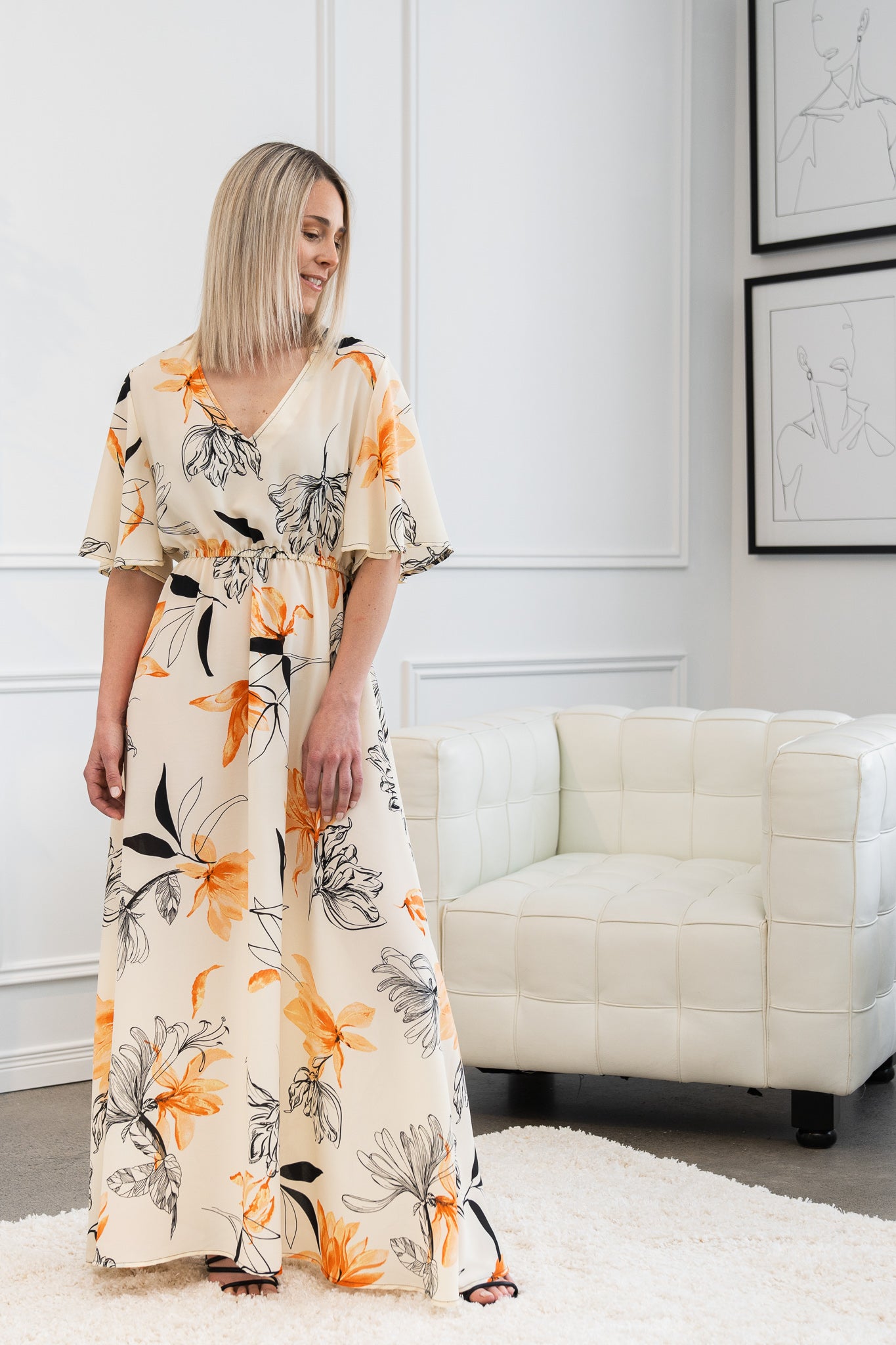 Light weight A-line long dress with short sleeves